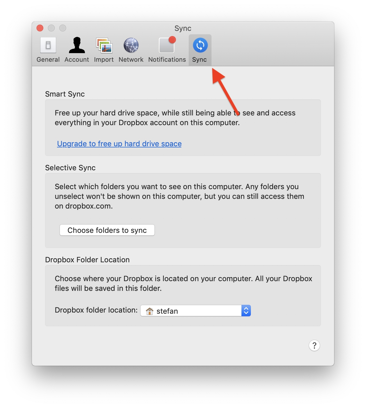 Click the Sync tab, and then click the "Choose folders to sync" button: